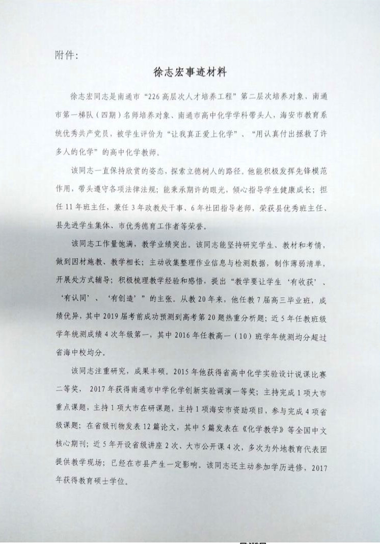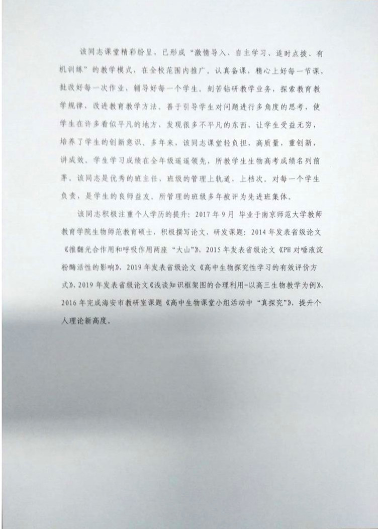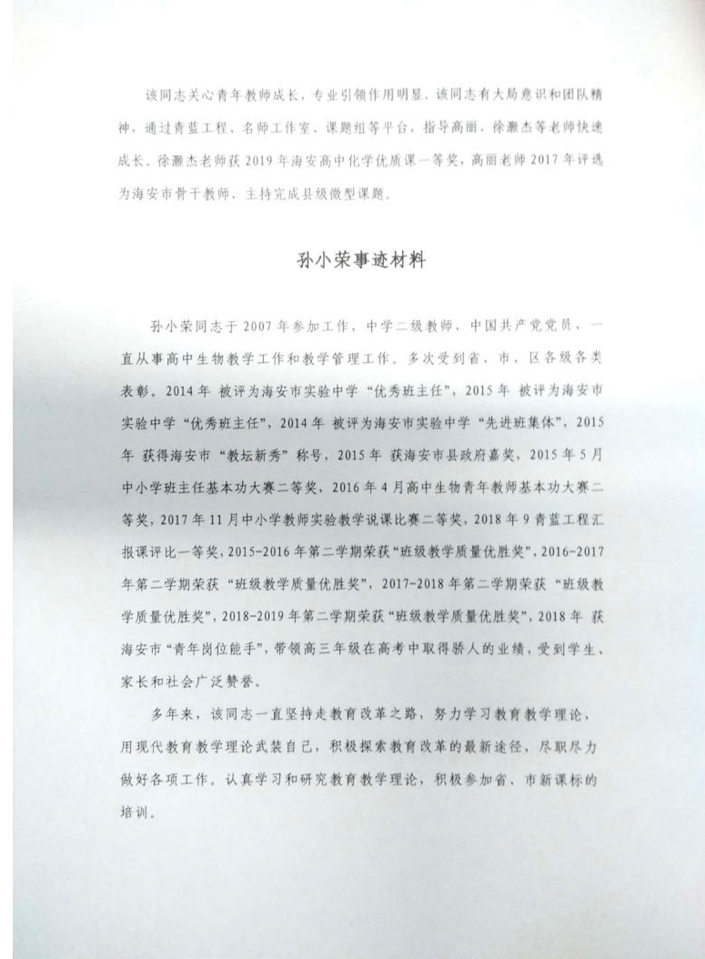 关于“南通市优秀教育工作者”推荐人员公示 来源:校办公室 发布时间:2020-08-03 00:00:00 浏览次数: 次 【字体:小 大】 关于“南通市优秀教育工作者”推荐人员公示 文章来源:校办公室 作者: 发布时间:2020年08月03日 点击数: 次 [添加收藏] [ 打印文章 ] 上一篇:关于做好南通市第17届园丁奖、先进集体、优秀教育工作者推荐工…[ 07-30 ] 下一篇:2020年职评文件[ 08-19 ] 分享到: 【打印正文】