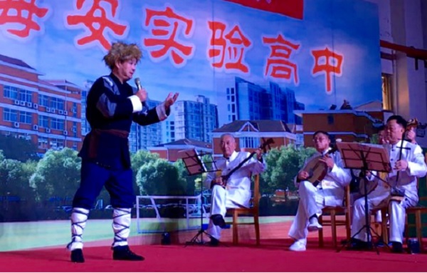 本次京剧专场演出便是海安实验中学所开展地中华优秀传统文化进校园系列活动之一。校团委主动联系海安市老干部京剧协会,邀请京剧协会的退休干部票友们为实验中学的高一高二师生奉上了一场精彩的京剧大餐,《智取威虎山》、《红灯记》、《沙家浜》等经典唱段连番上演,博得了现场师生的阵阵掌声。